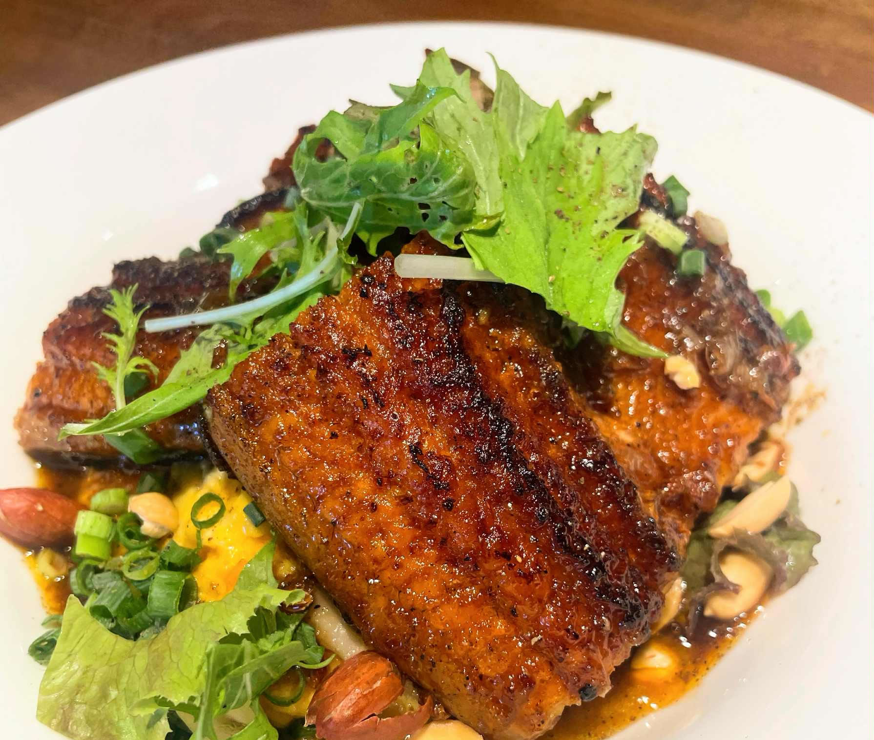 そのうな卵に香りが良くて痺れる刺激が癖になる四川山椒と中華の酸味のある特製のタレをかけナッツで食感もプラスした愛菜華でしか食べられない特製うな卵です!